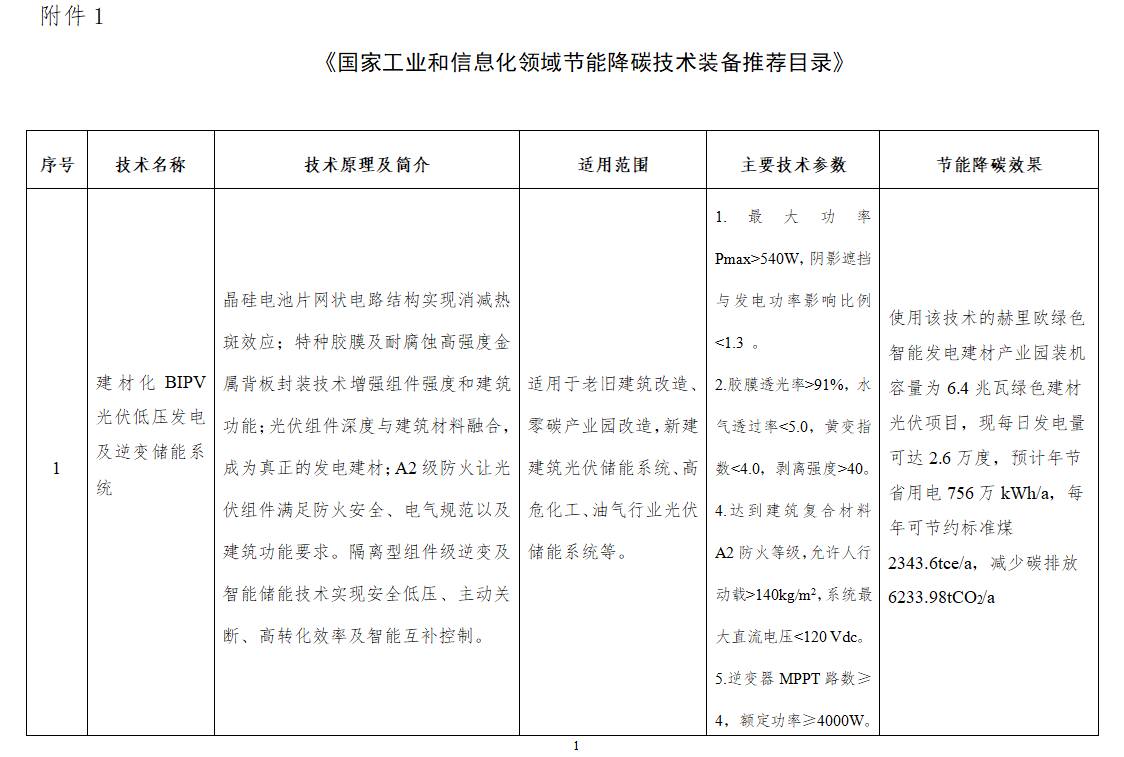 在绿色转型的关键时期,每一步科技创新都可能成为有助于可持续开展的关键力量。4月30日,工业和信息化部正式公示了《国家工业和信息化领域节能降碳技术装备推荐目录(2024年版)》,旨在推广高效节能、低碳环保的先进技术装备,助力我国工业体系加速向绿色低碳转型。在这份权威推荐目录中,维多利亚老品牌VIC新能源有限公司凭借其在建材化光伏系统(BIPV)领域的卓越贡献与创新成果,荣耀上榜,彰显了公司在节能降碳技术领域的领先地位。